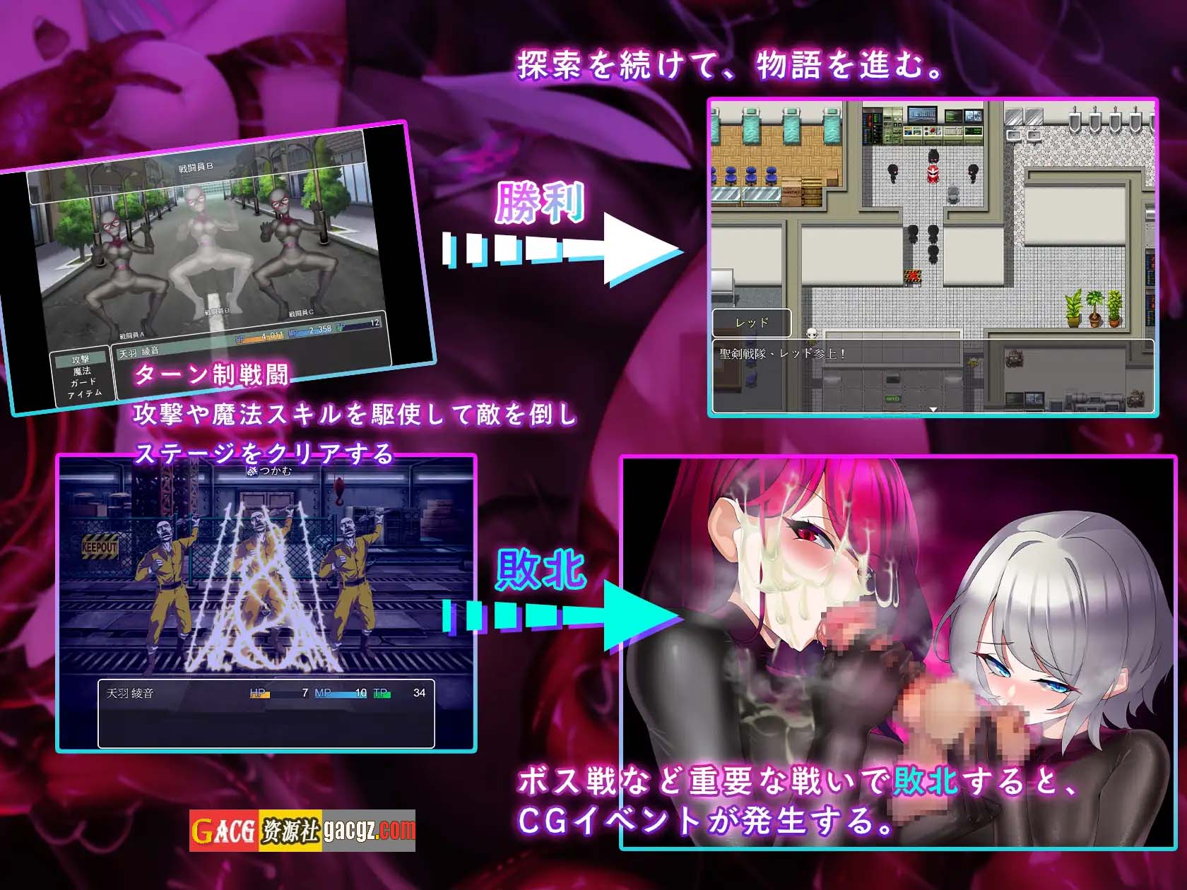 ◇一款以失败CG为重点的成人RPG游戏,尽情享受女主角陨落的过程吧!